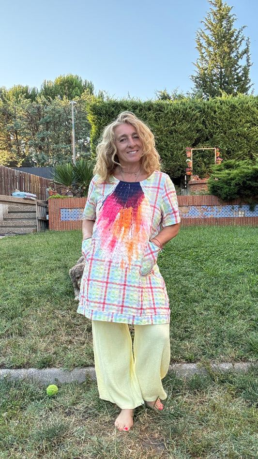 Blusón -vestido cuadros amarillo