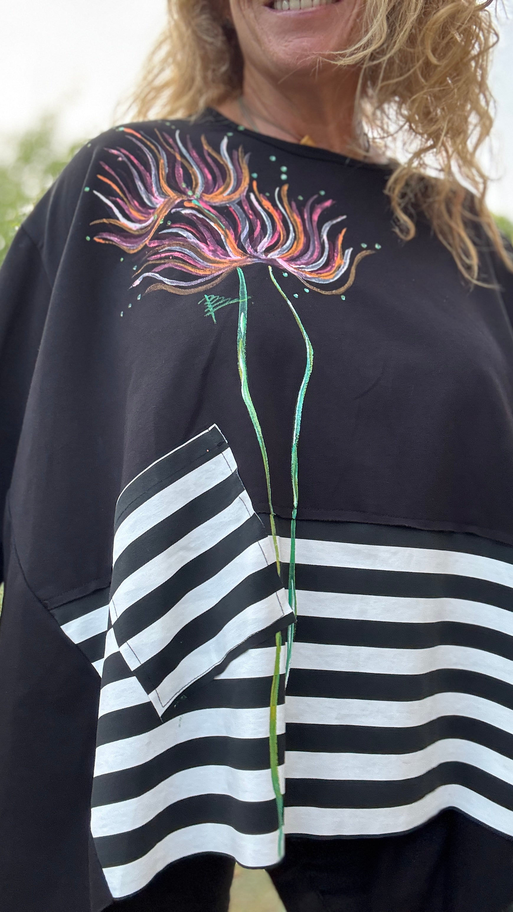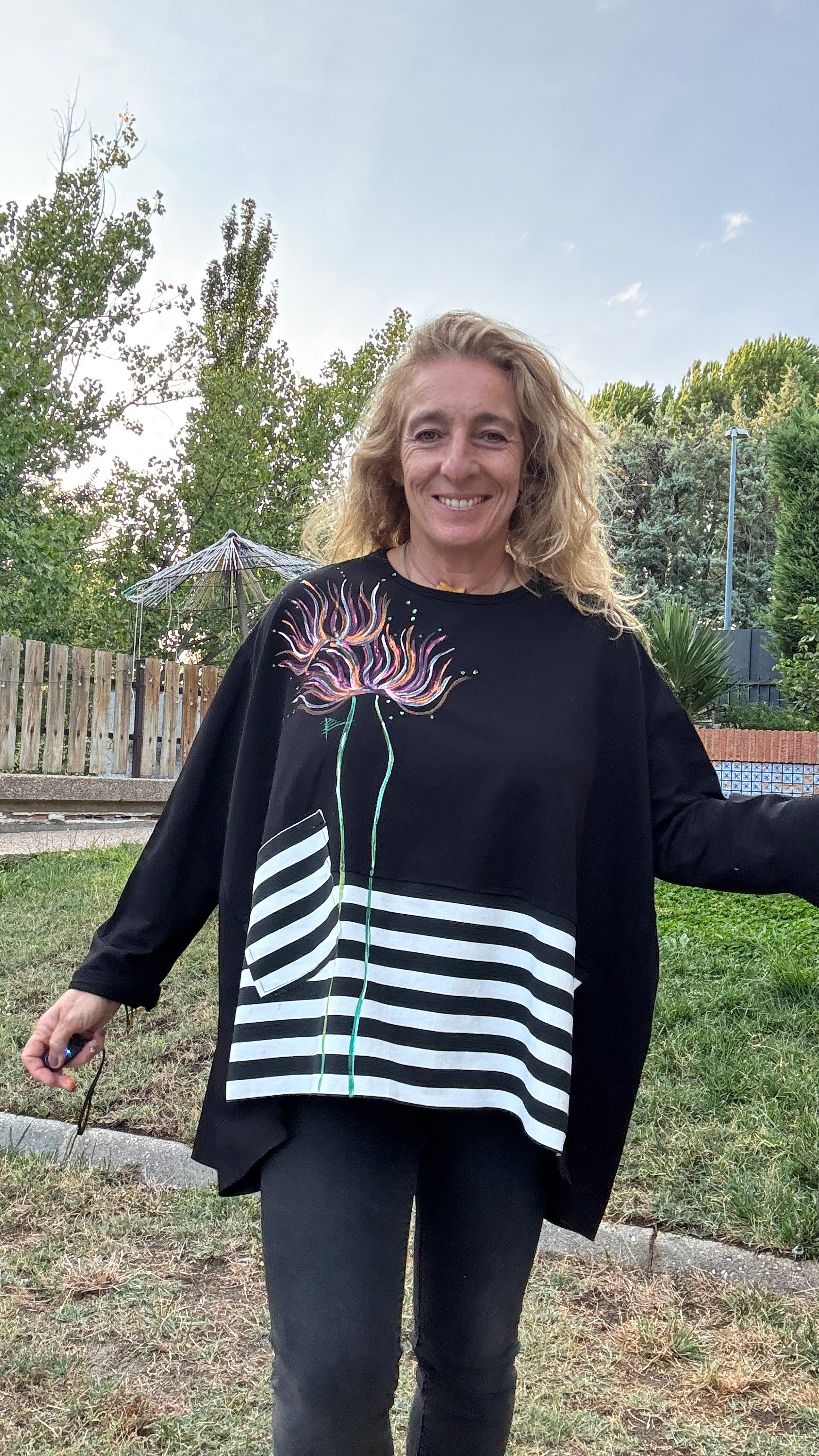 Blusón punto milano, oversize, raya blanco y negro