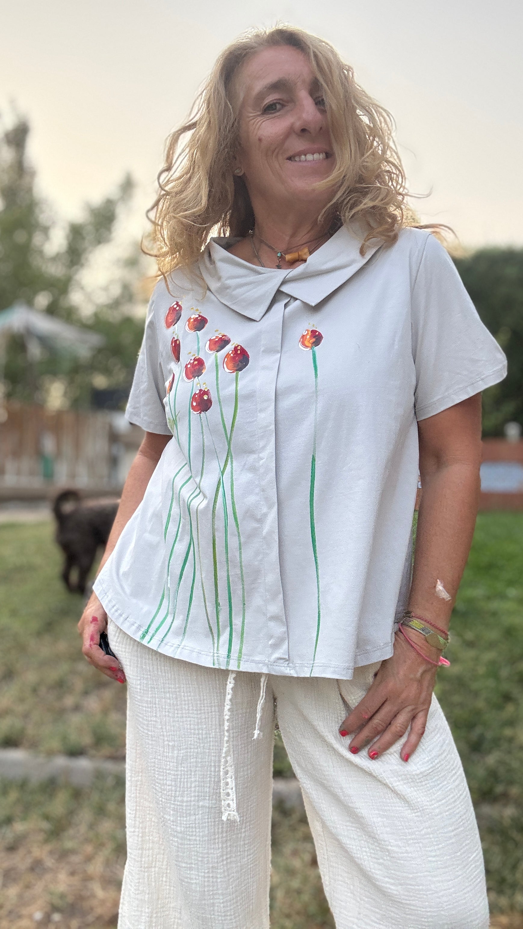 Camiseta cuello beige, talla única , algodón