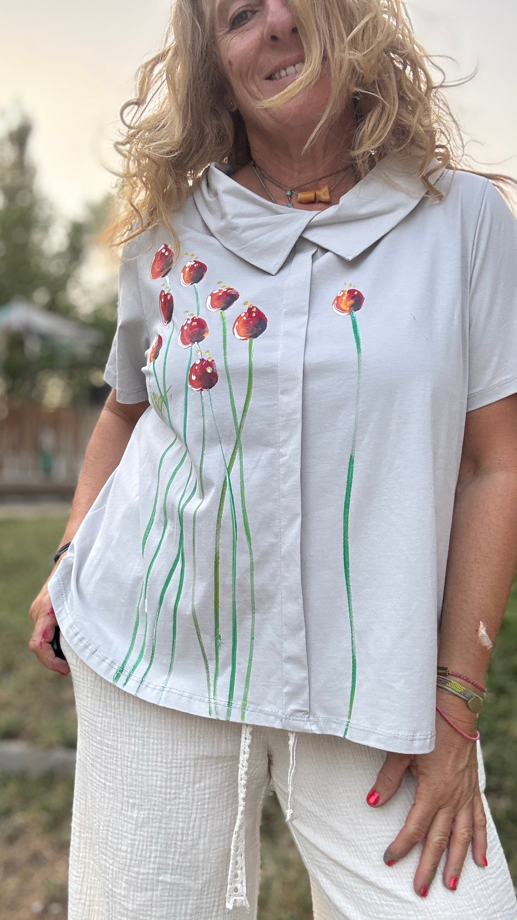 Camiseta cuello beige