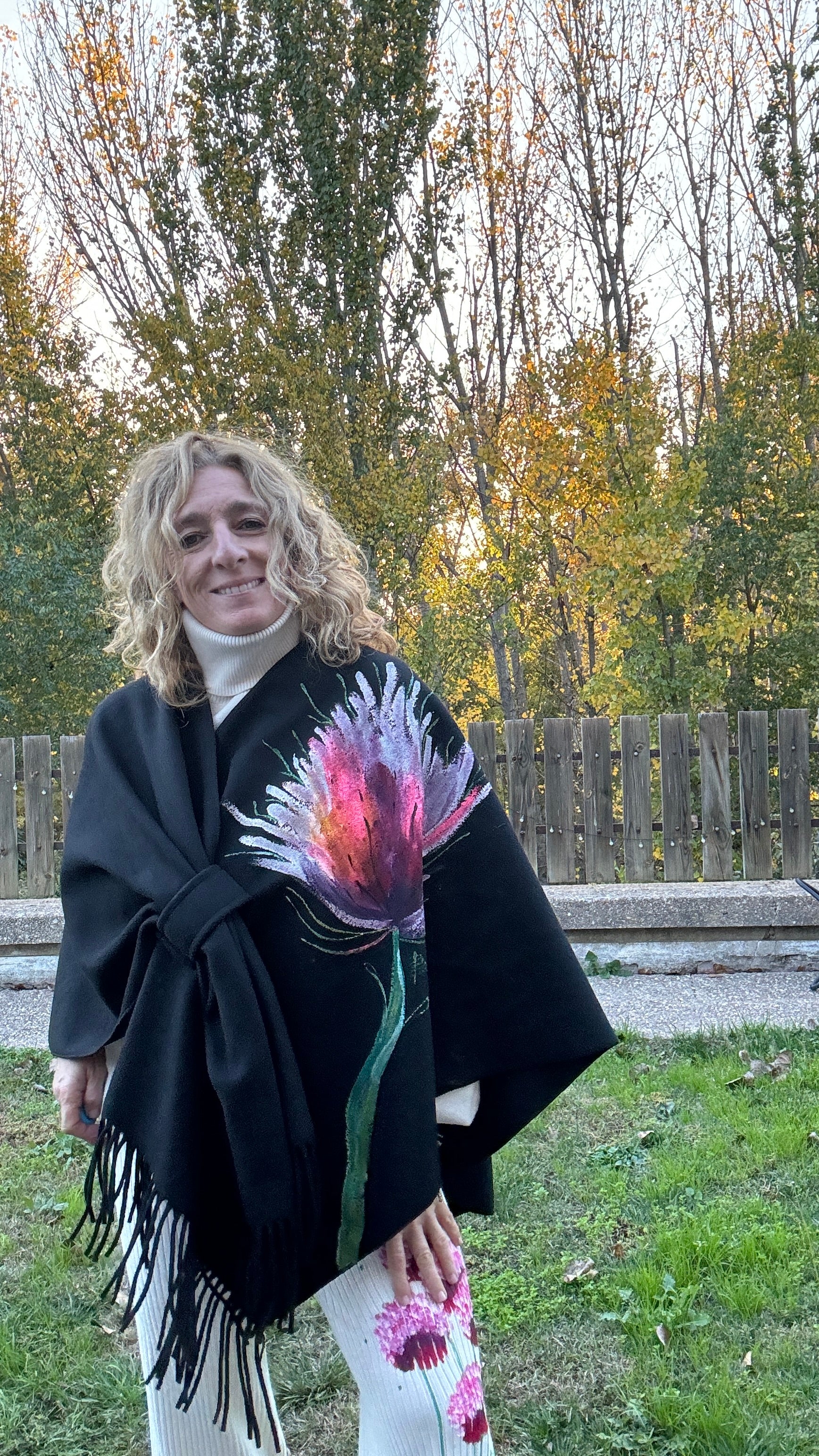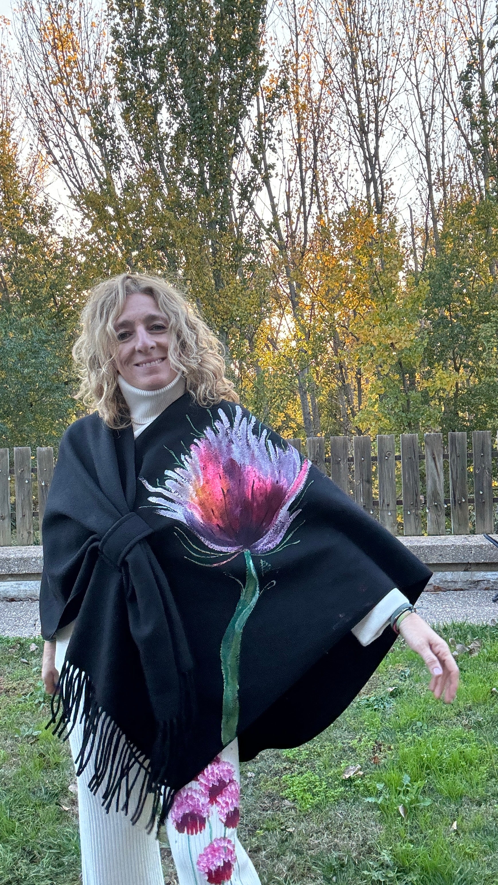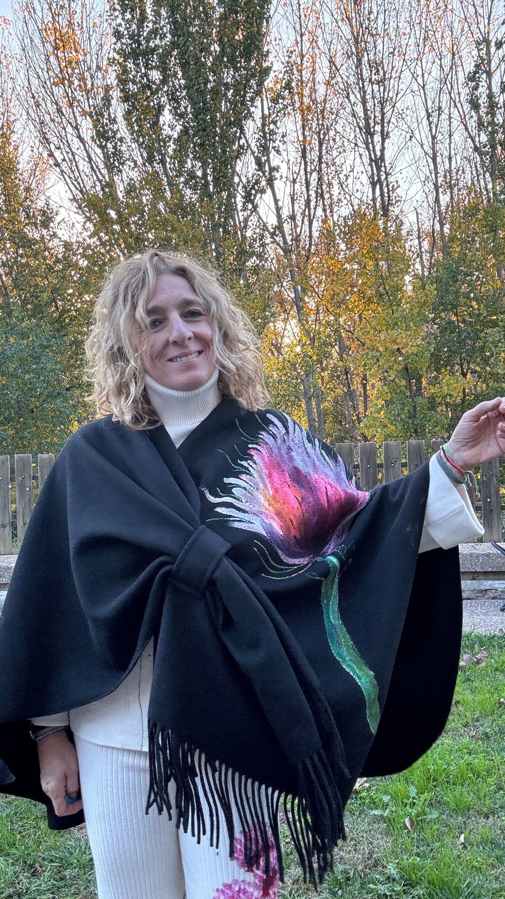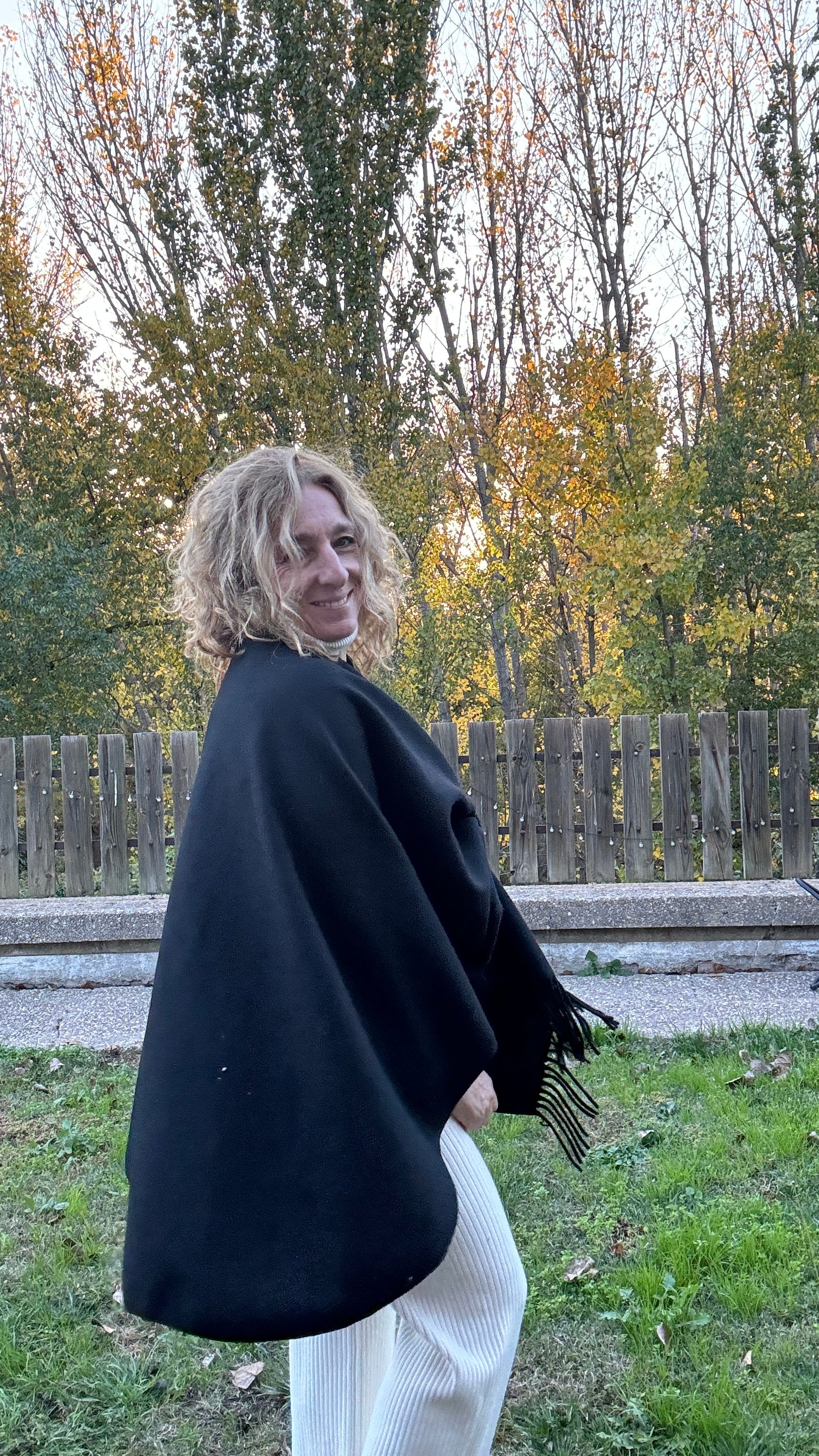 Capa flecos, color negro, talla única , con trabilla