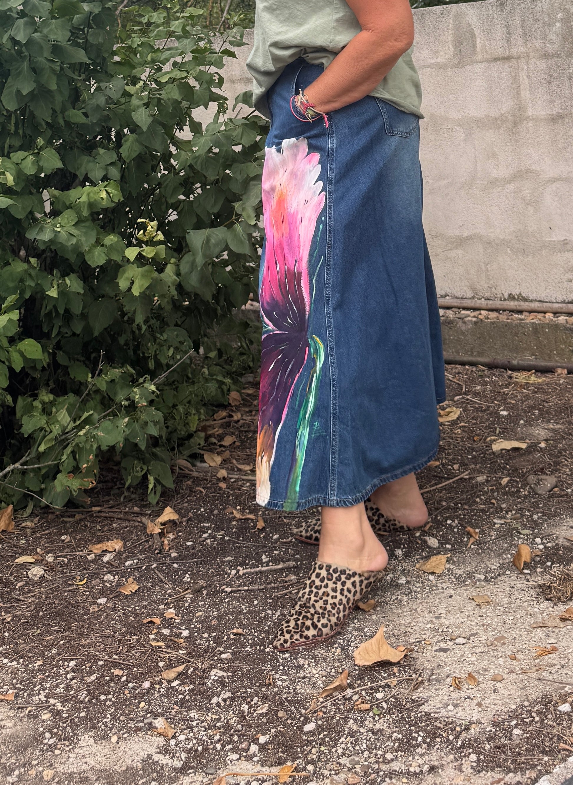 Falda vaquera azul, talla única, bolsillos , goma en cintura