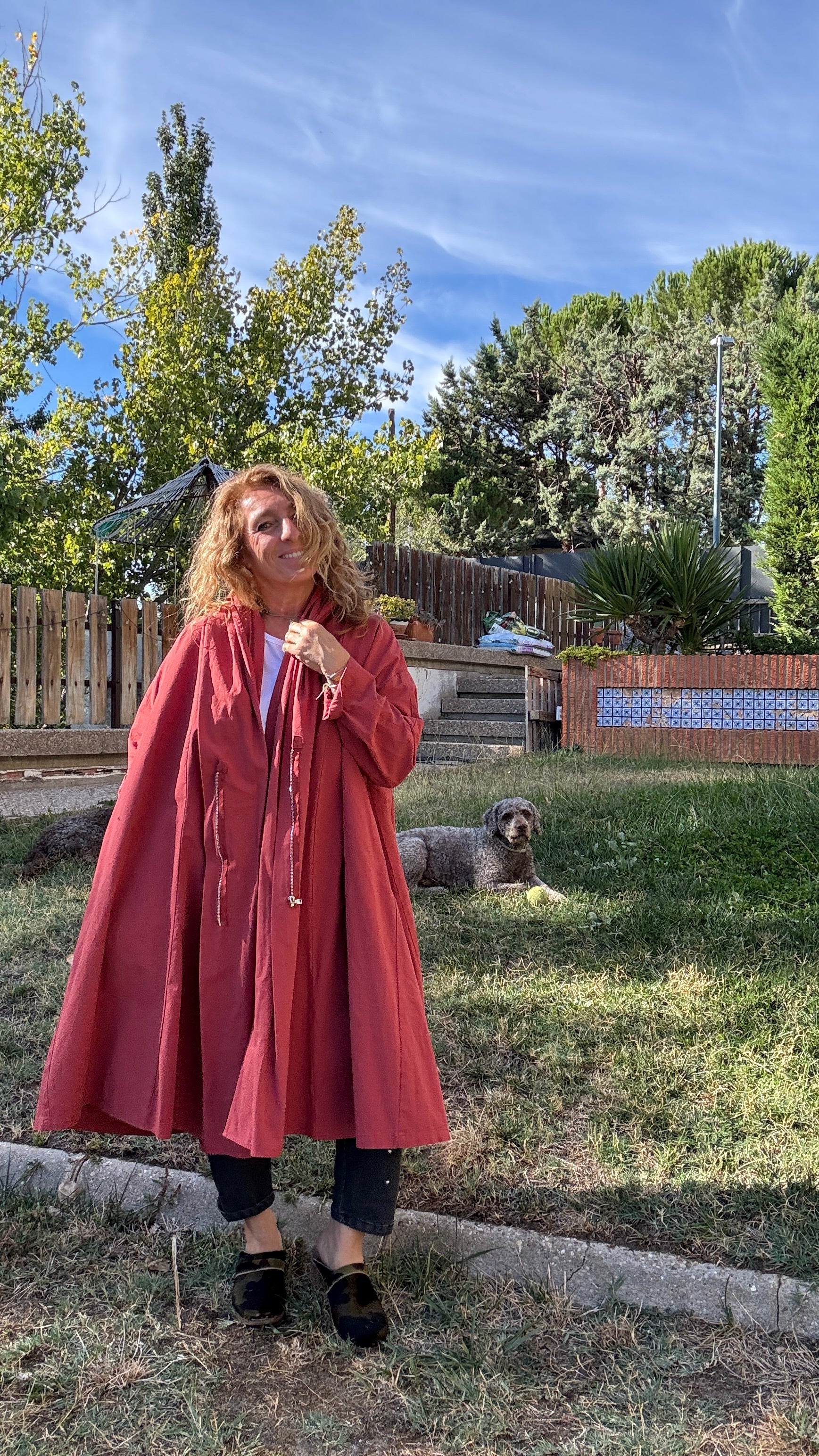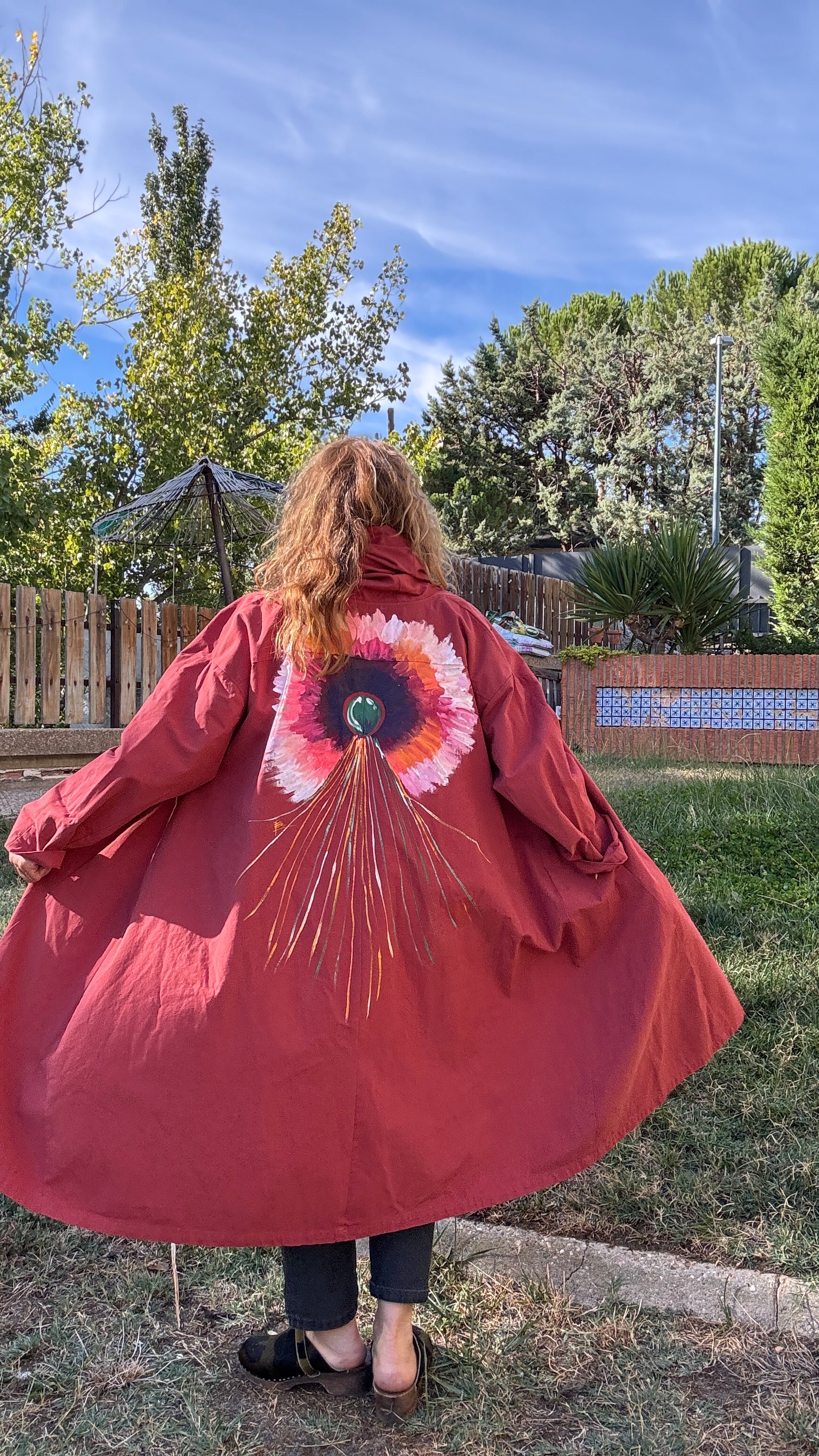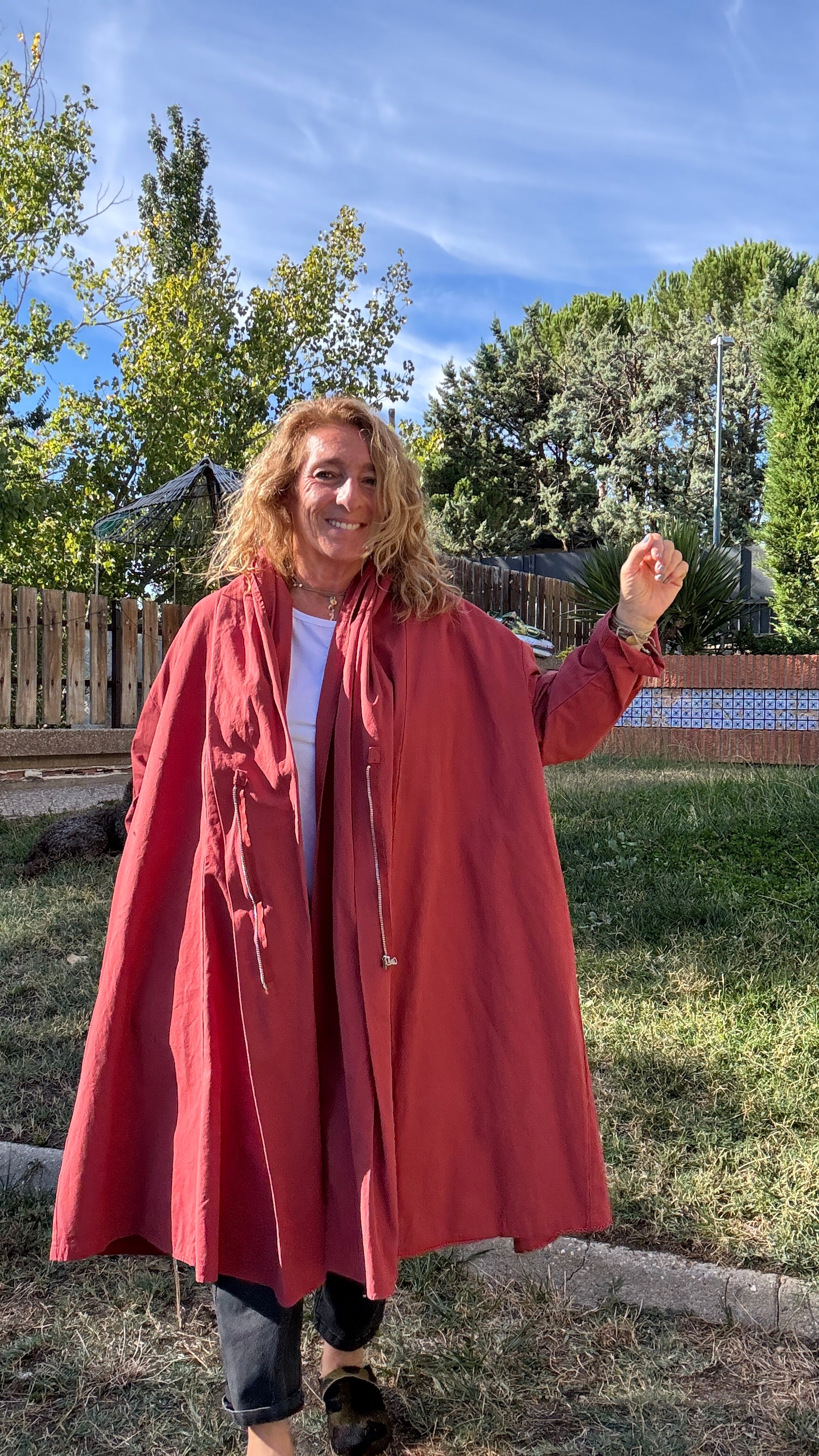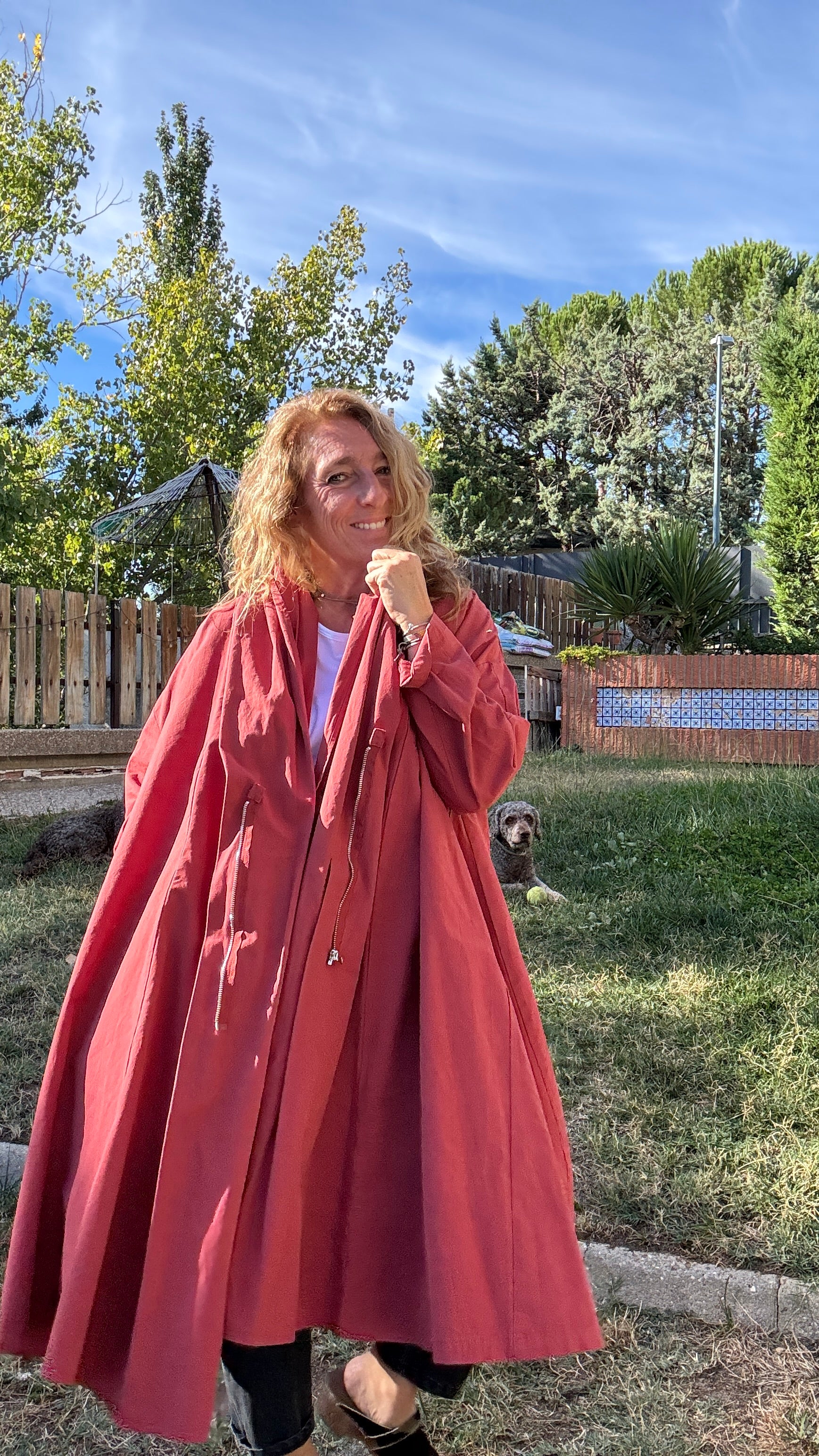 Gabardina, loneta, cierre, cremallera, Oversize, talla única, granate claro