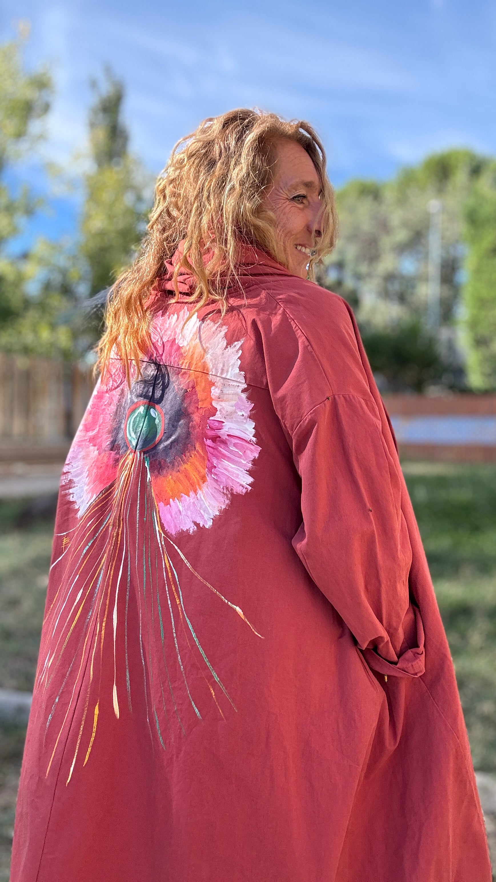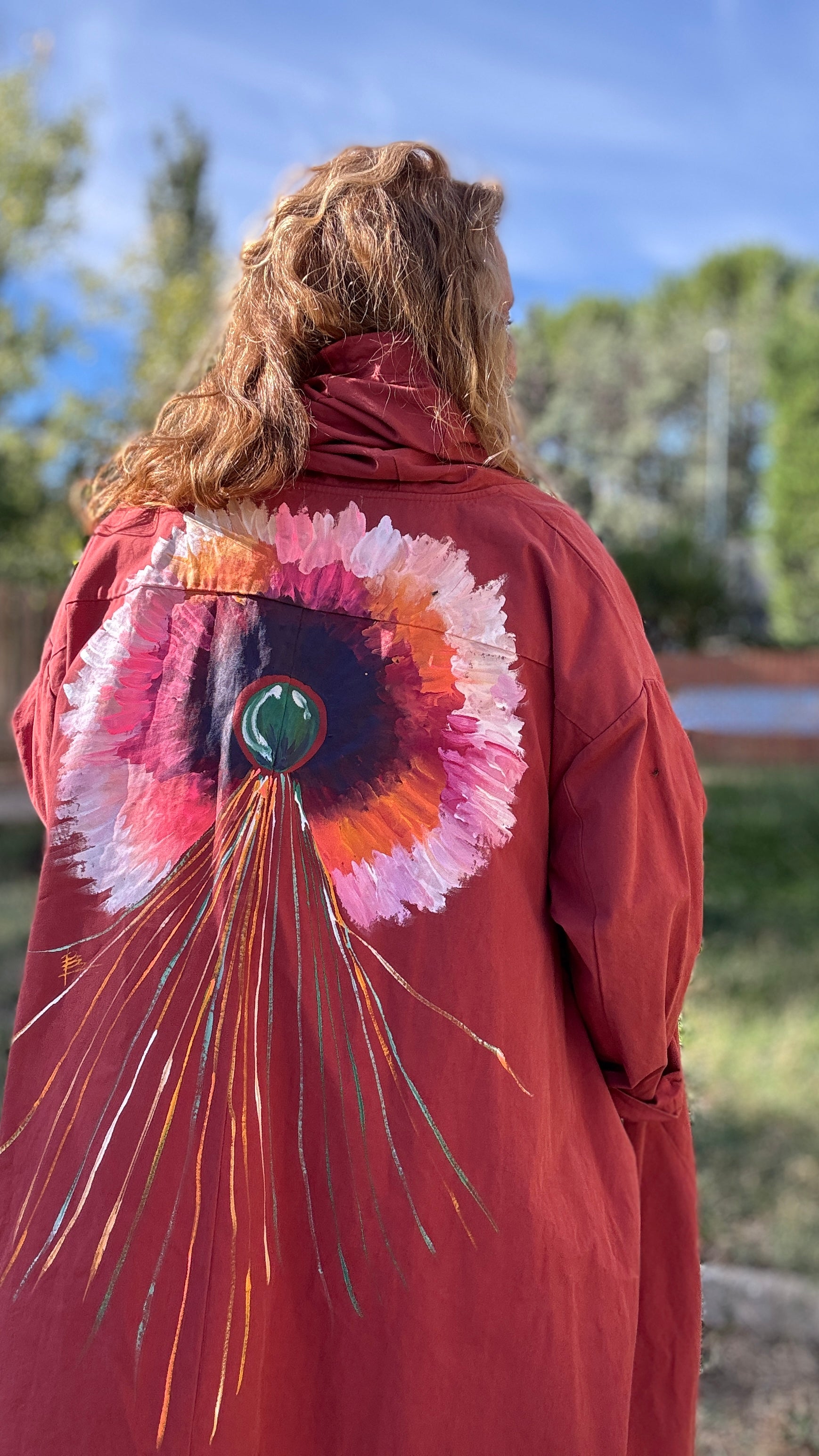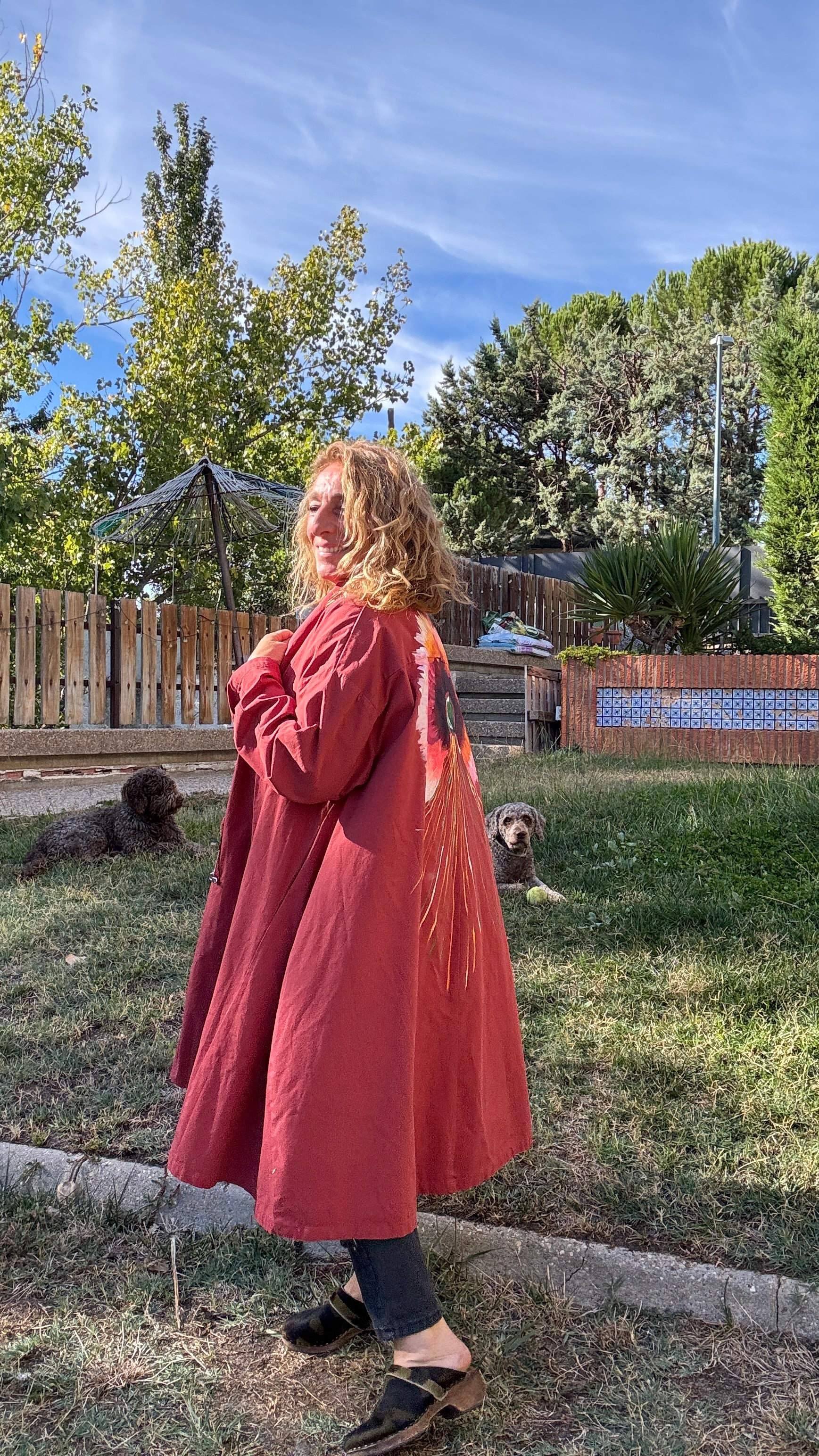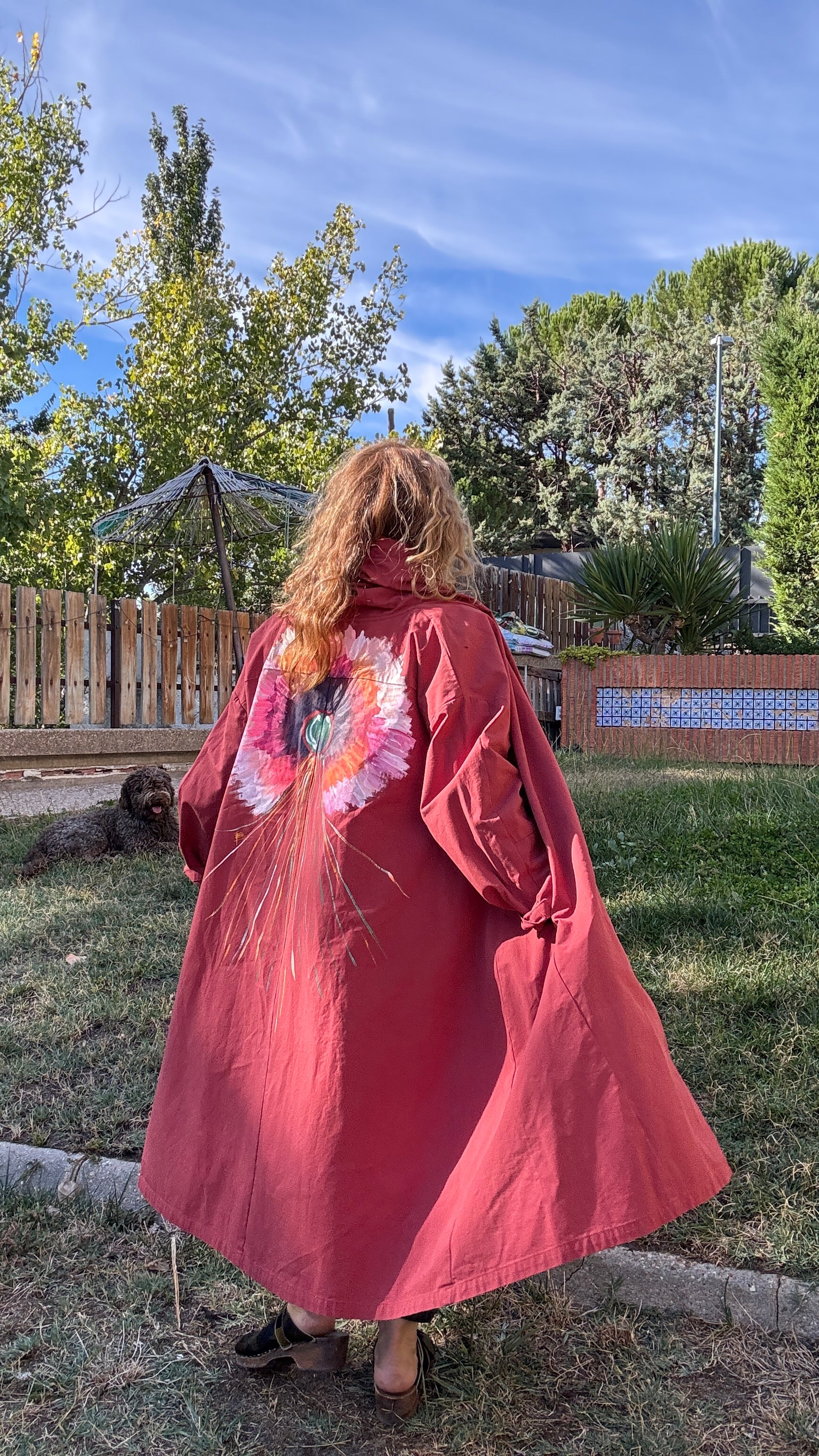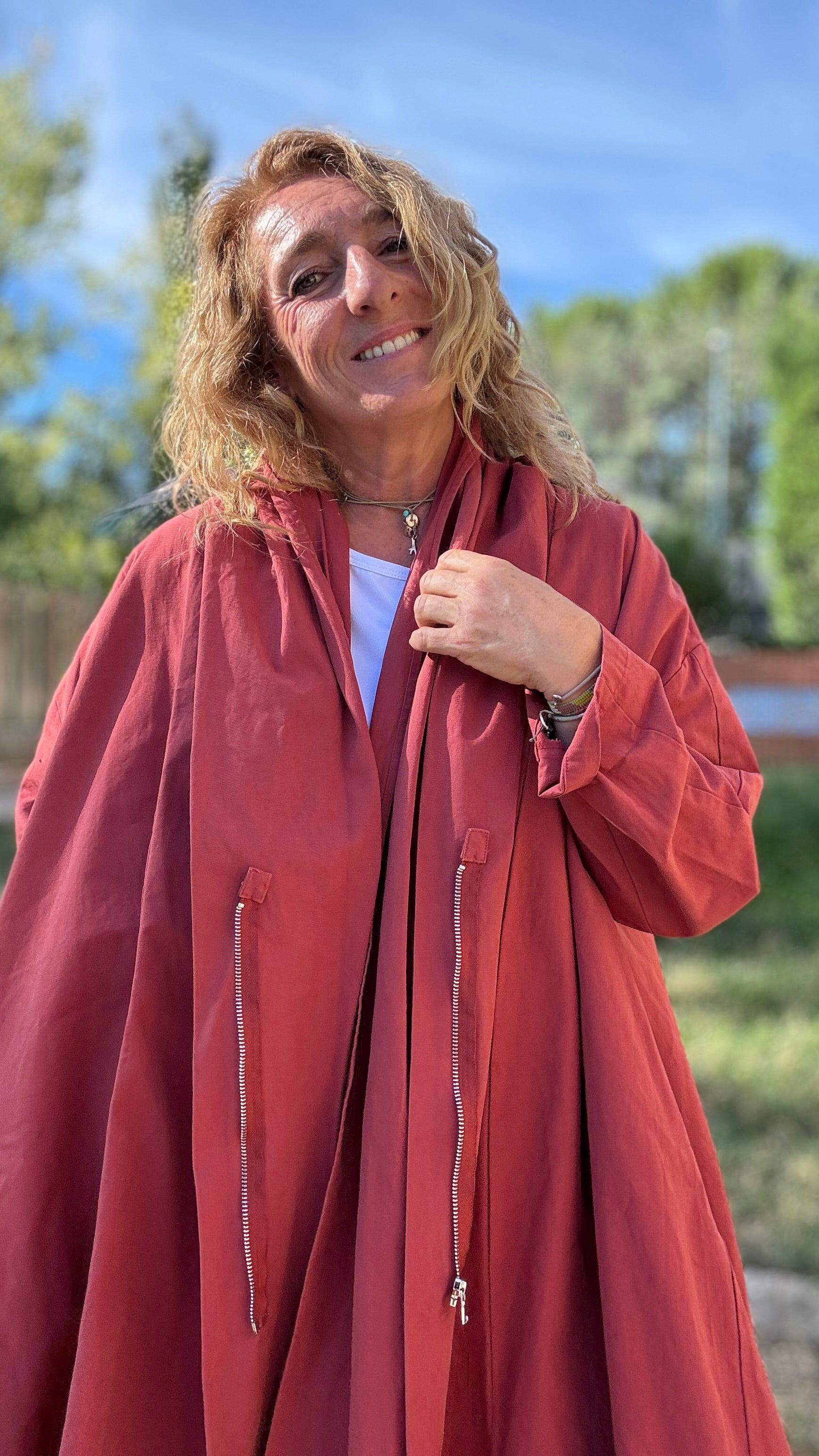Gabardina, loneta, cierre, cremallera, Oversize, talla única, granate claro