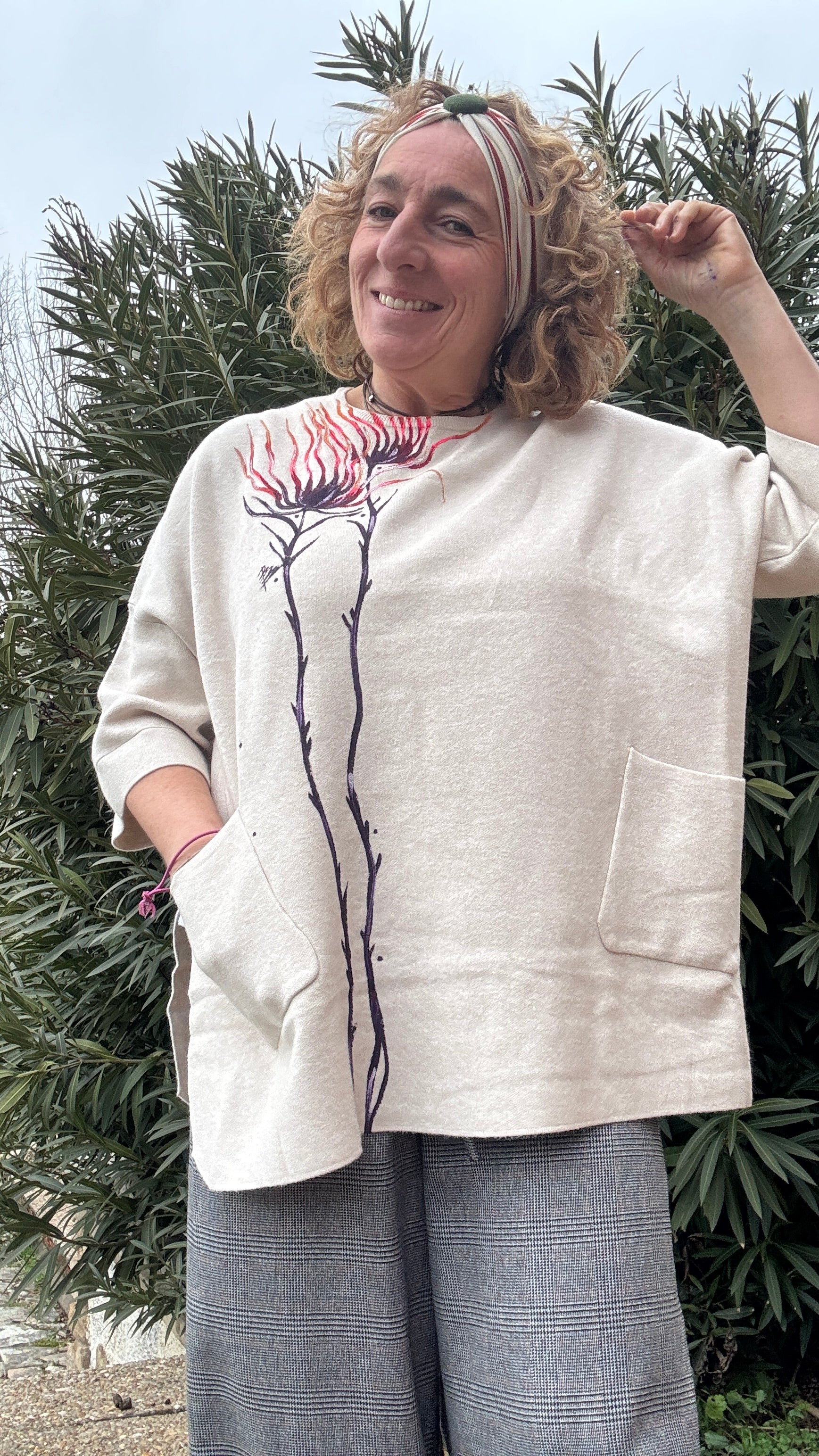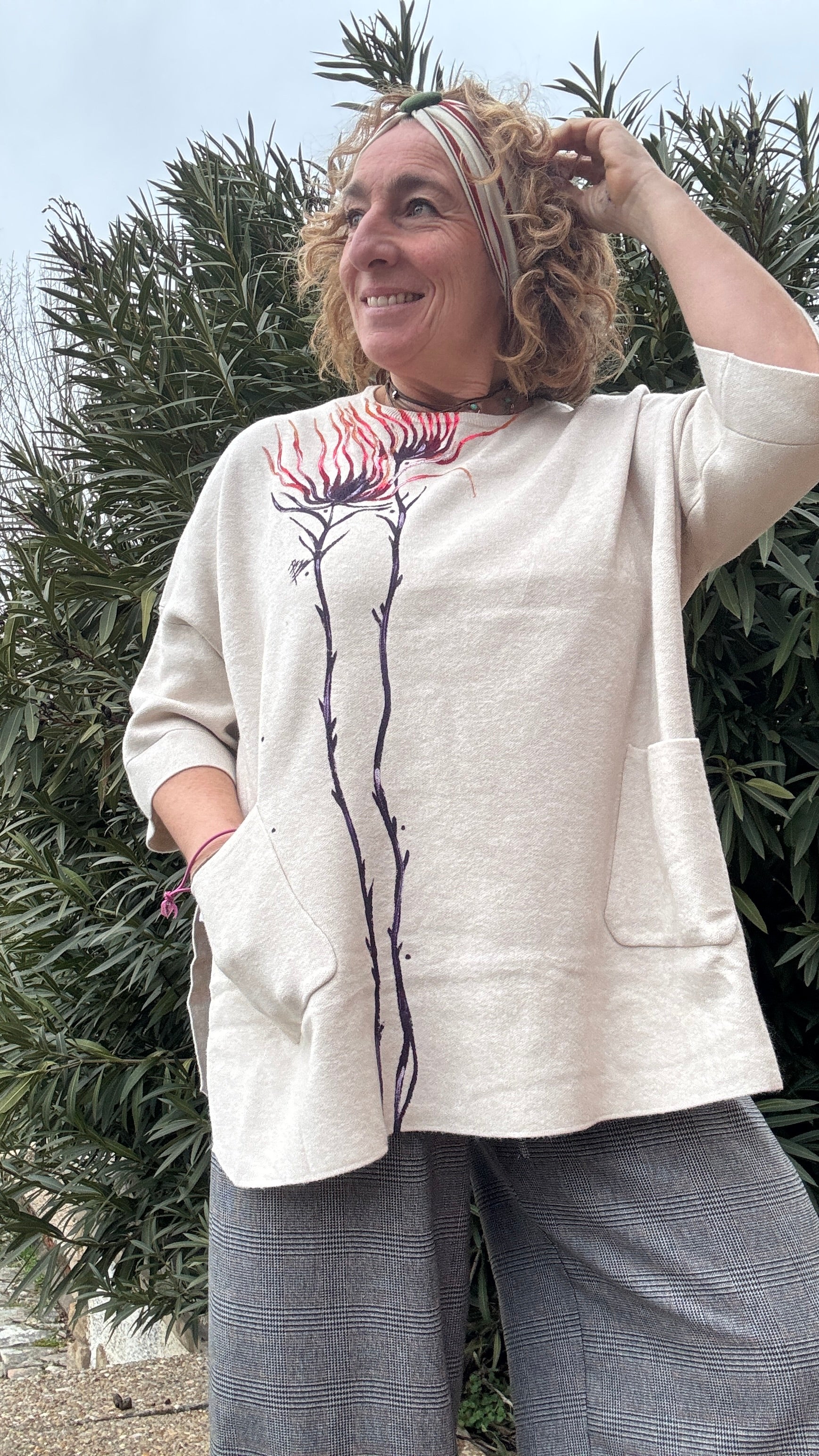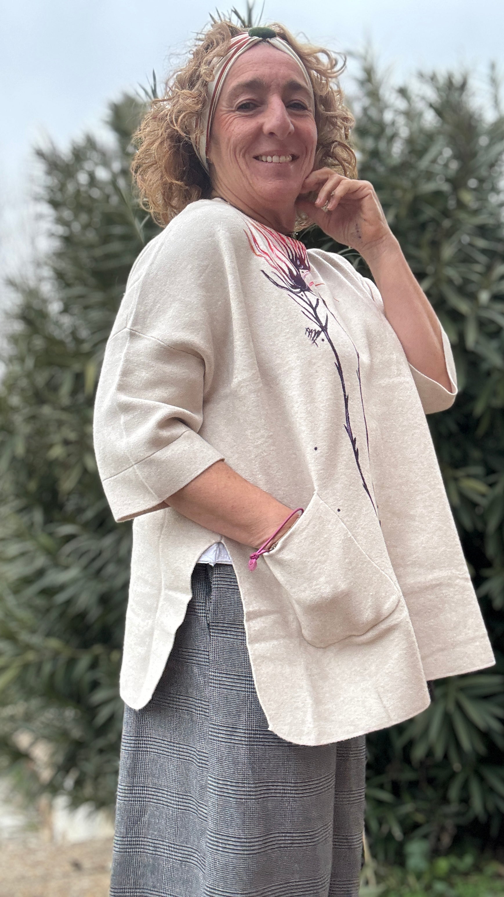 Jersey cuello caja color crudo, talla única