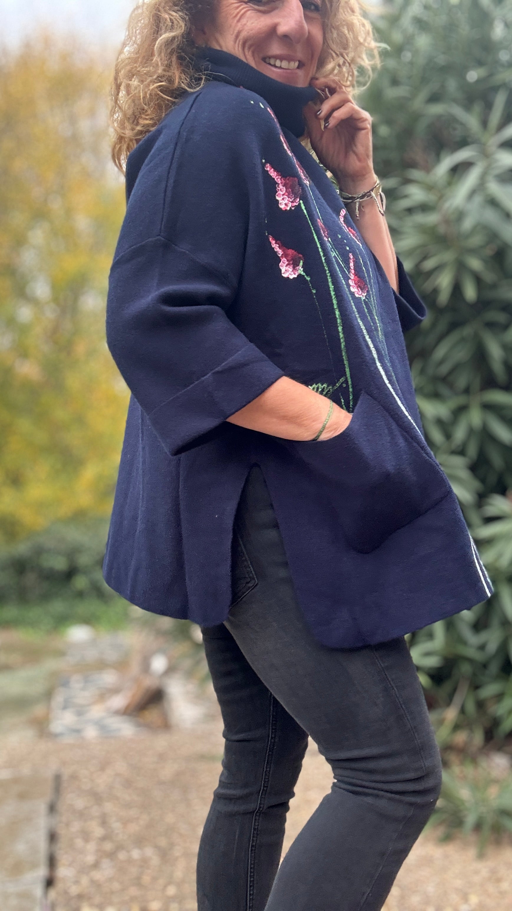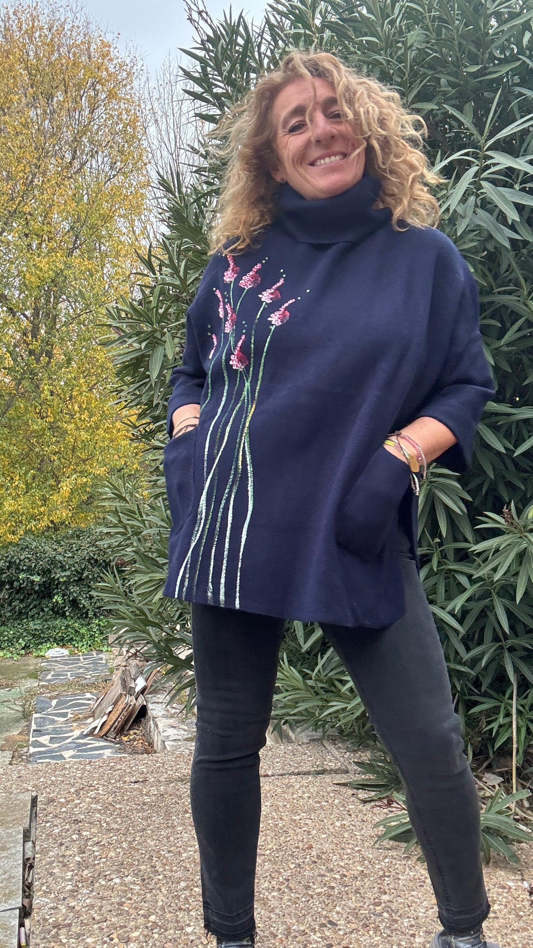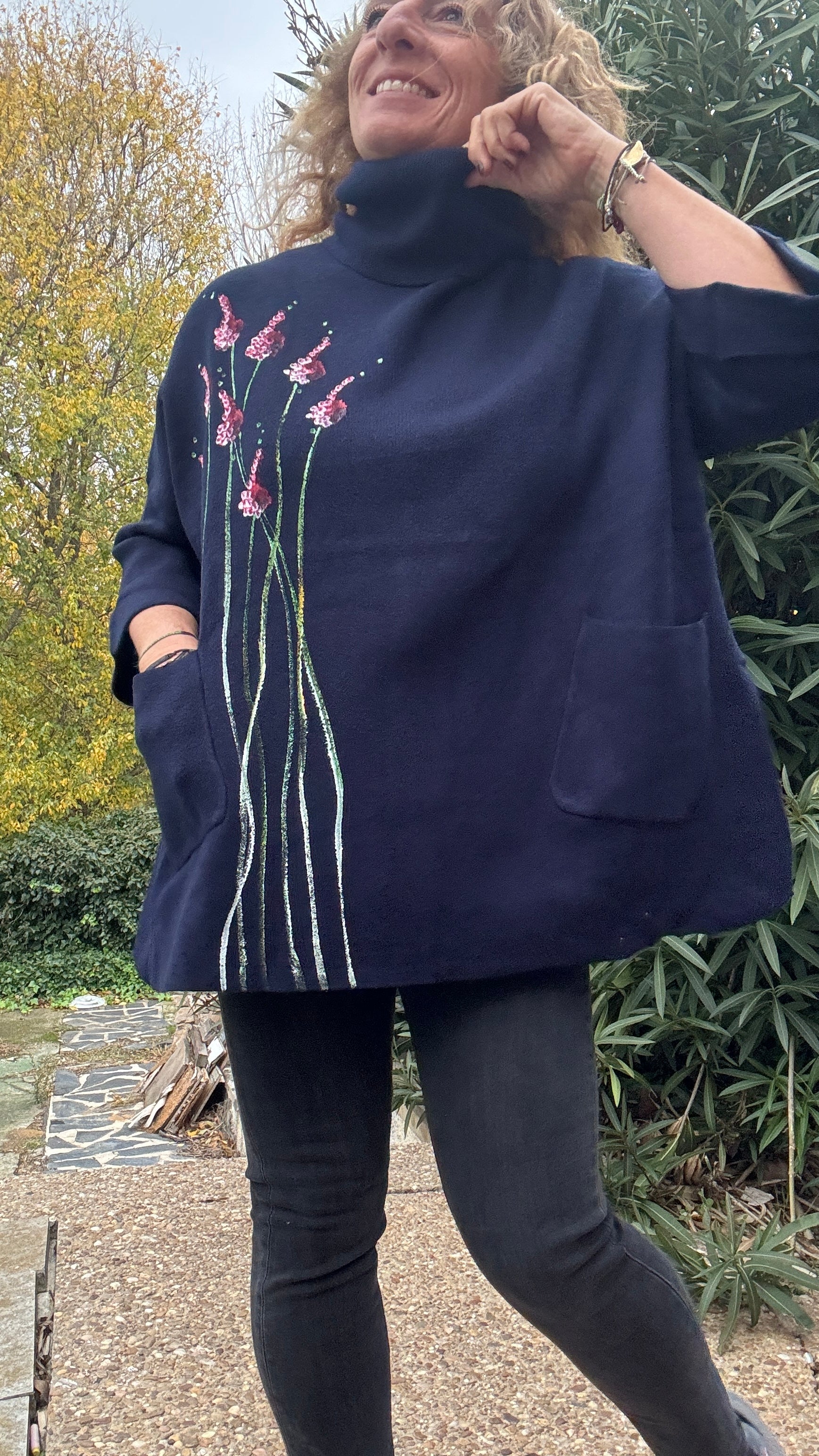 Jersey oversize marino, cuello vuelto, talla única