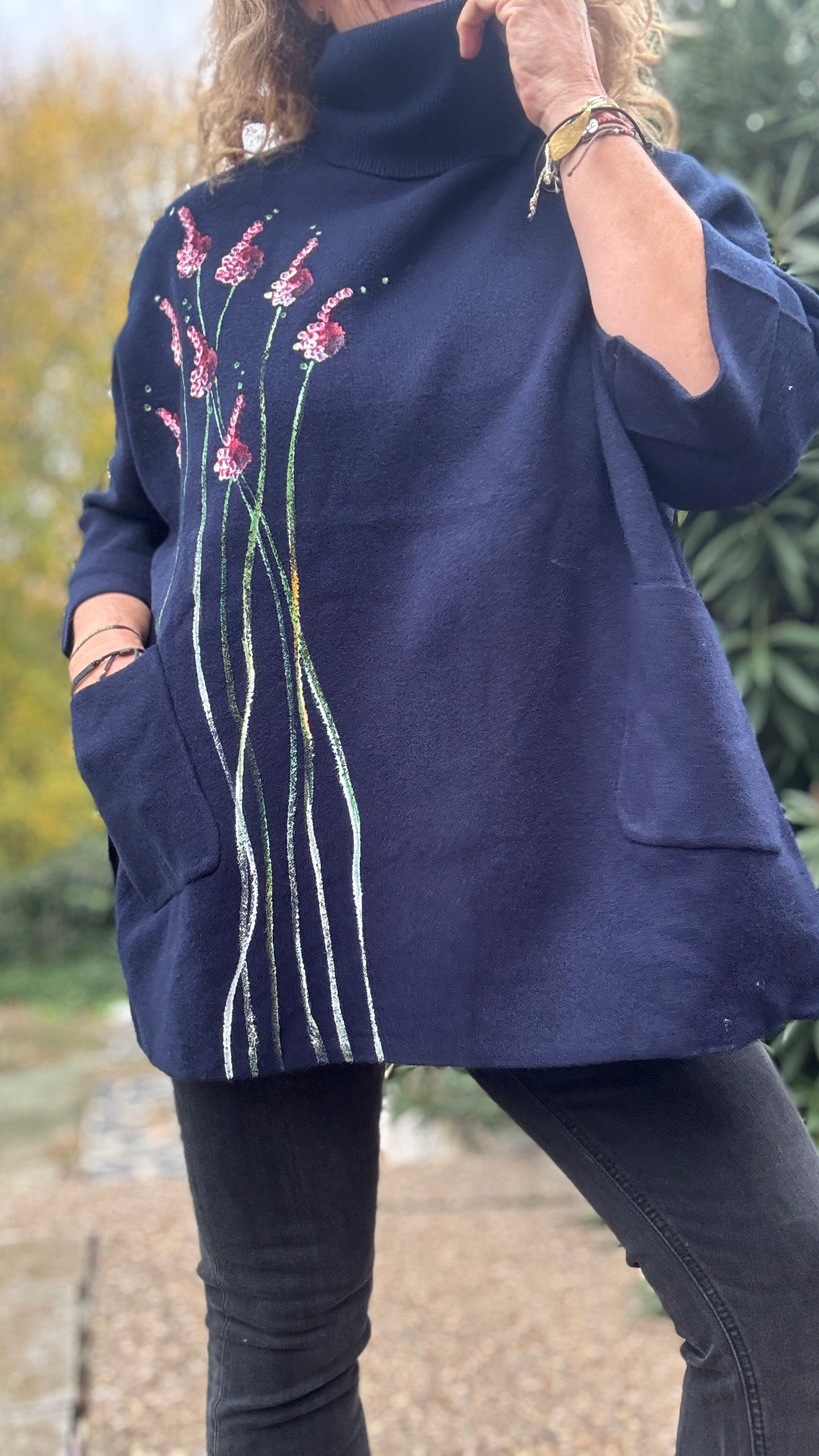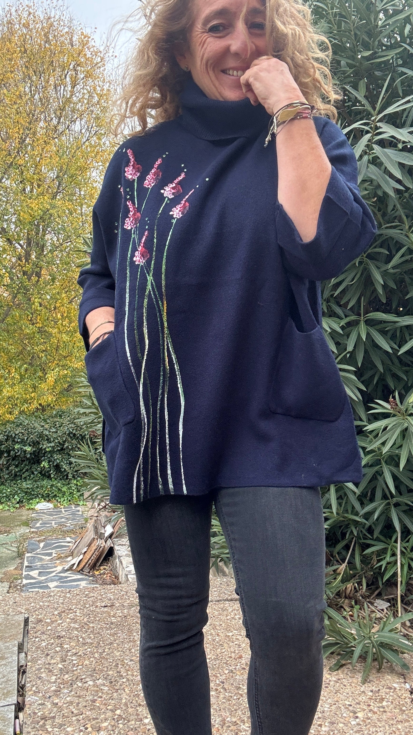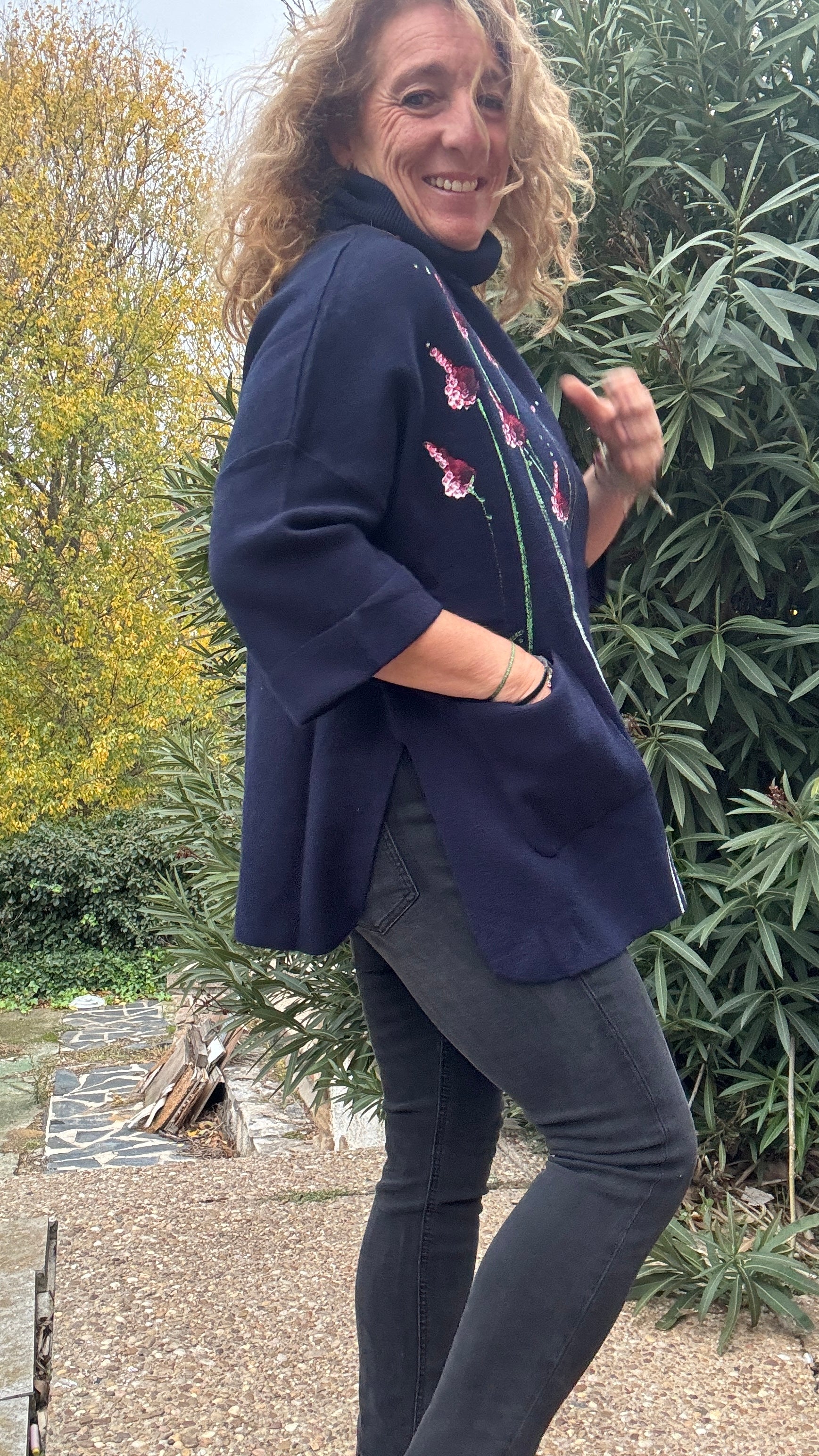 Jersey oversize marino, cuello vuelto, talla única