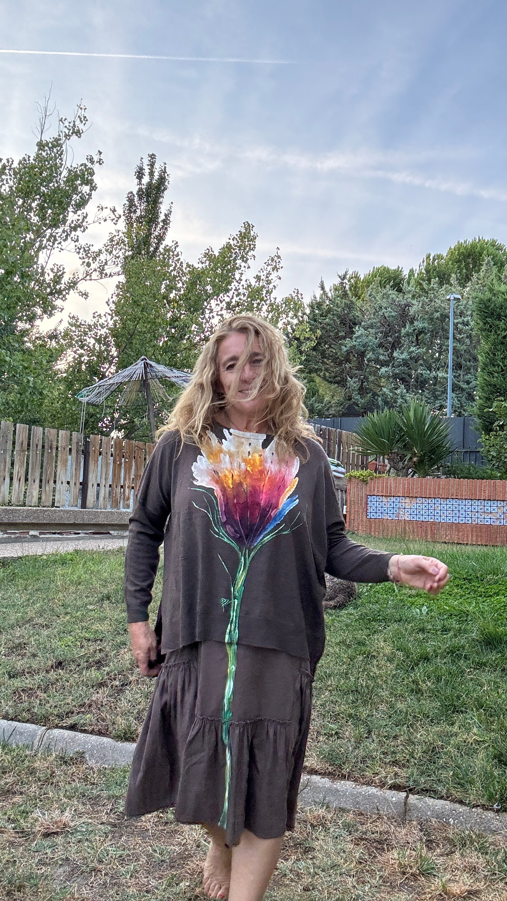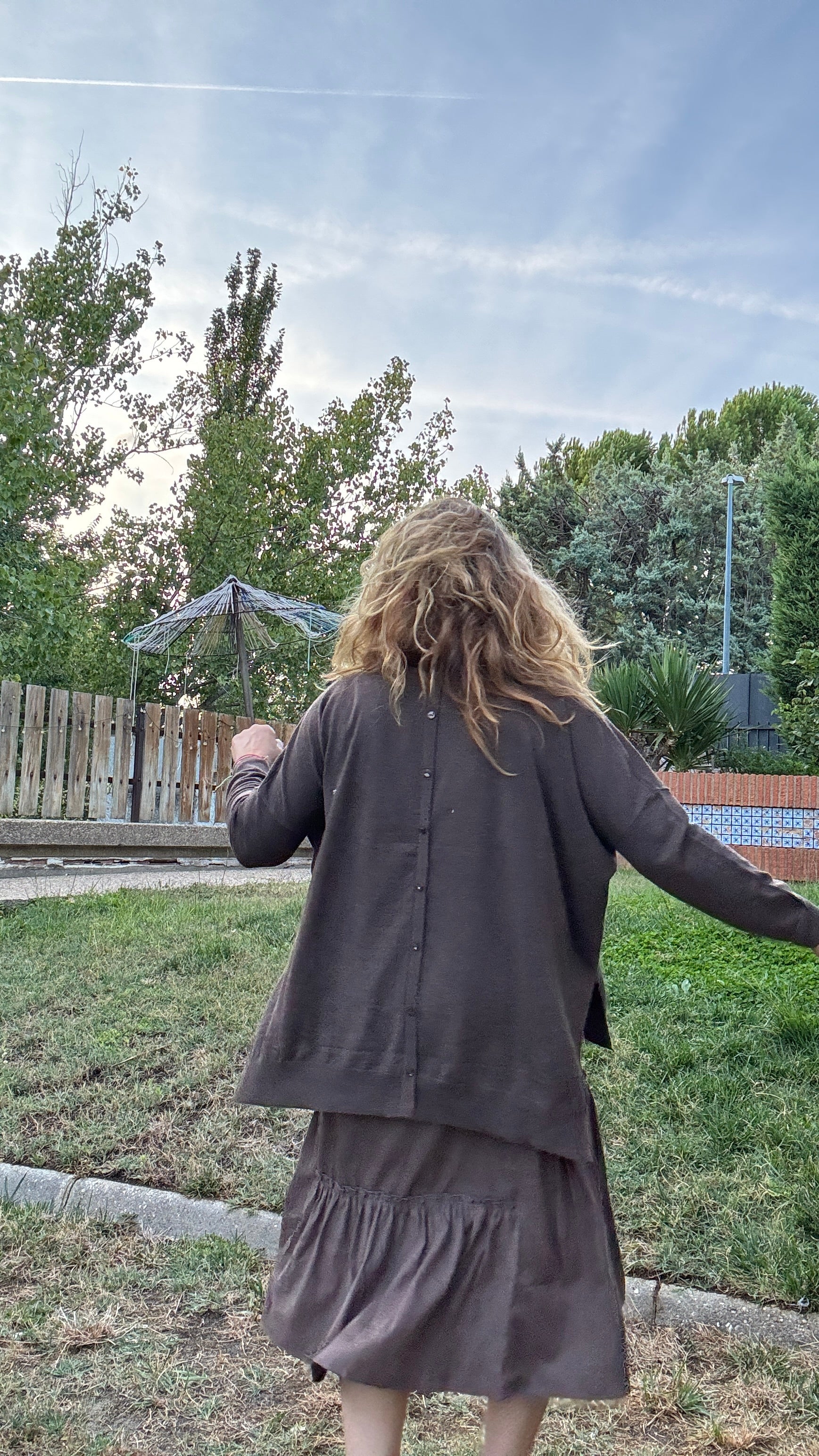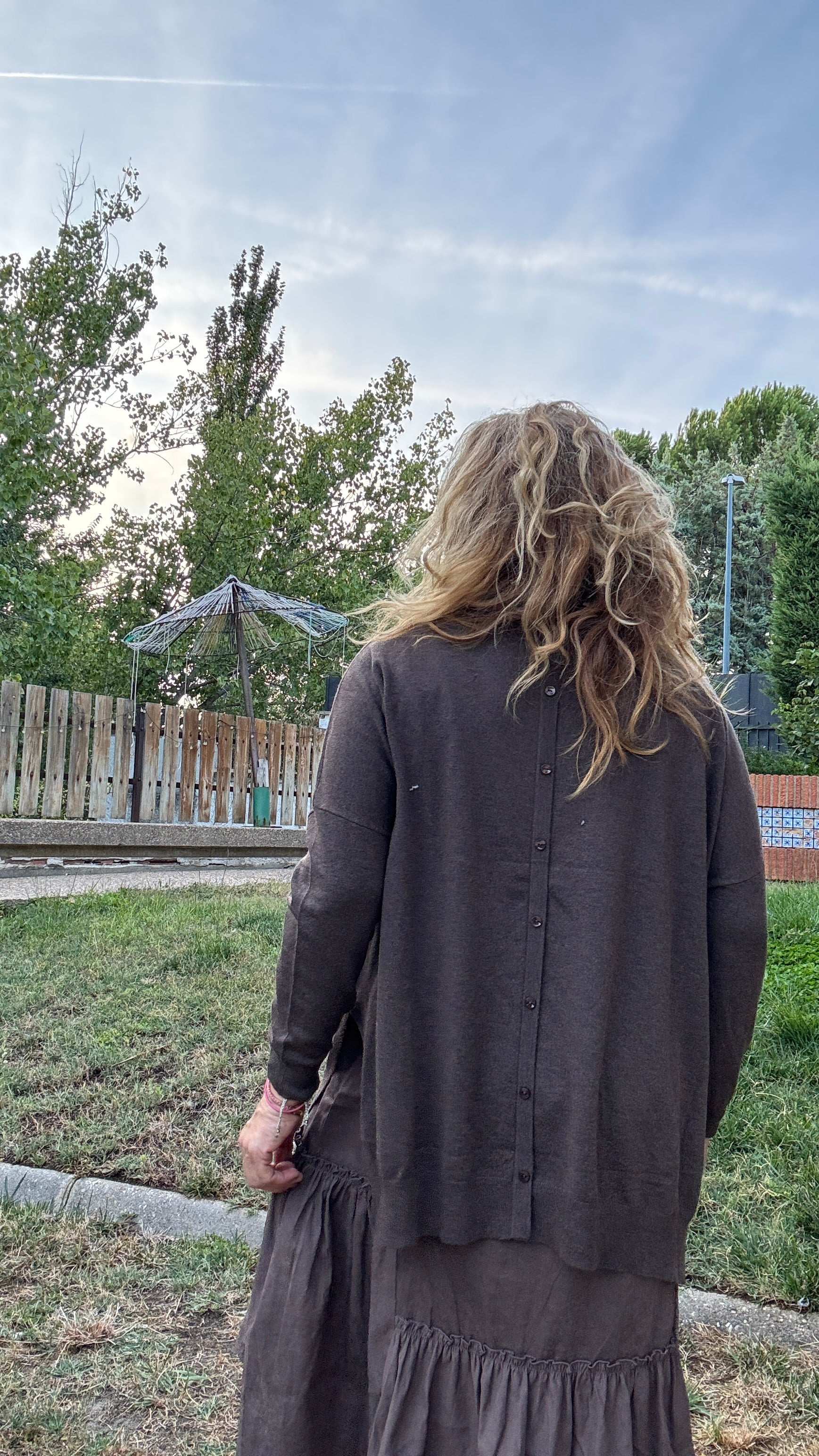 Vestido 2 piezas marrón, jersey oversize, vestido tirantes da talla