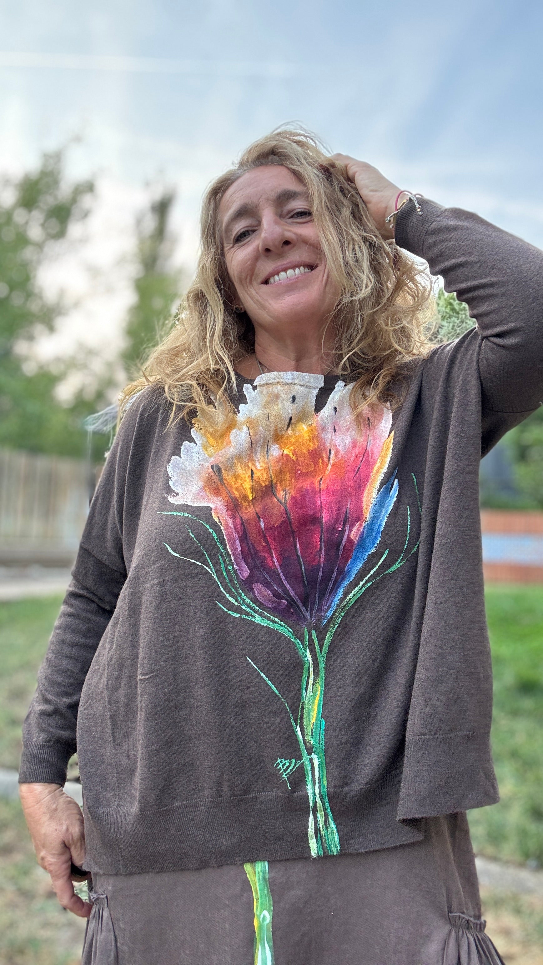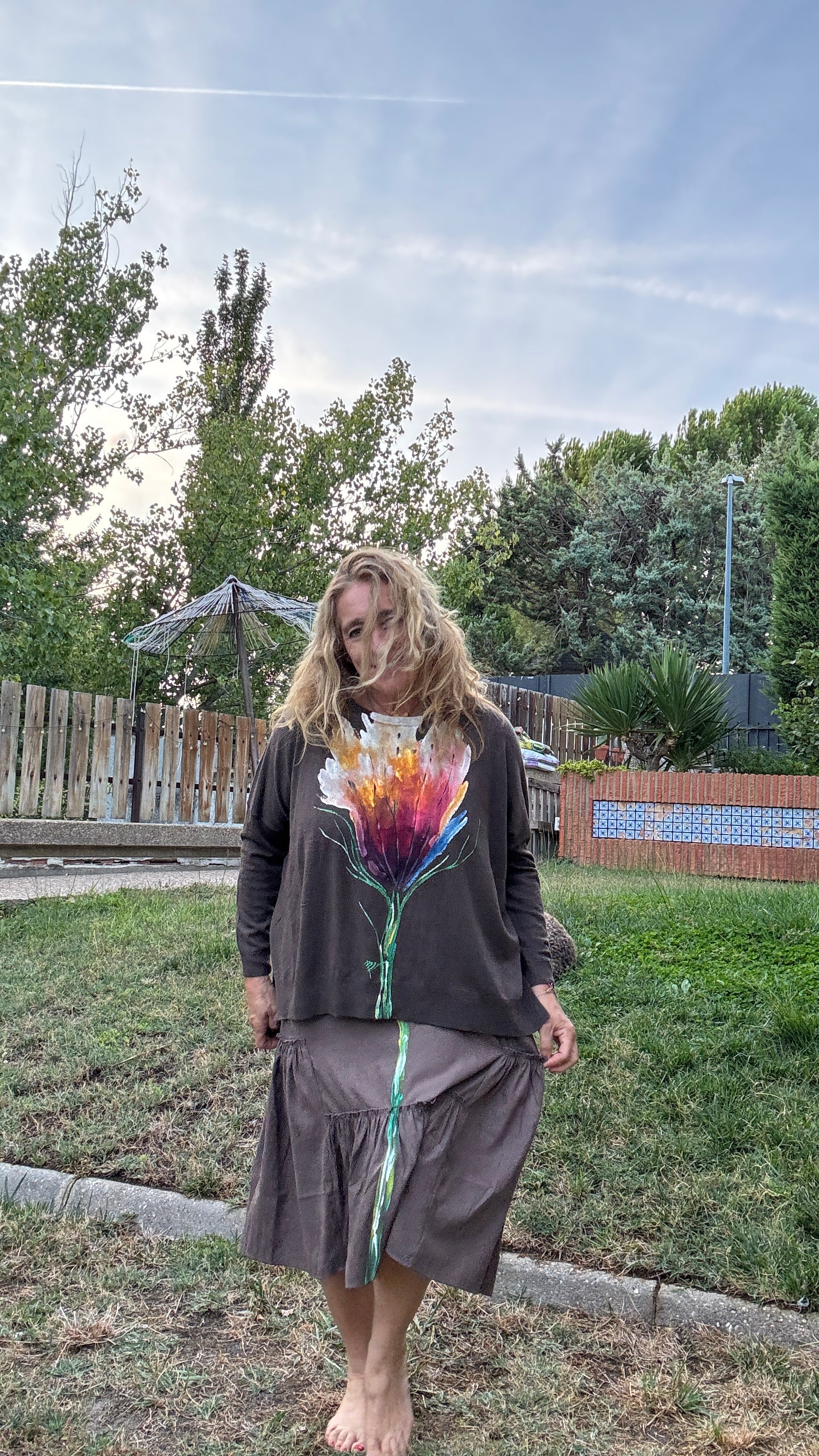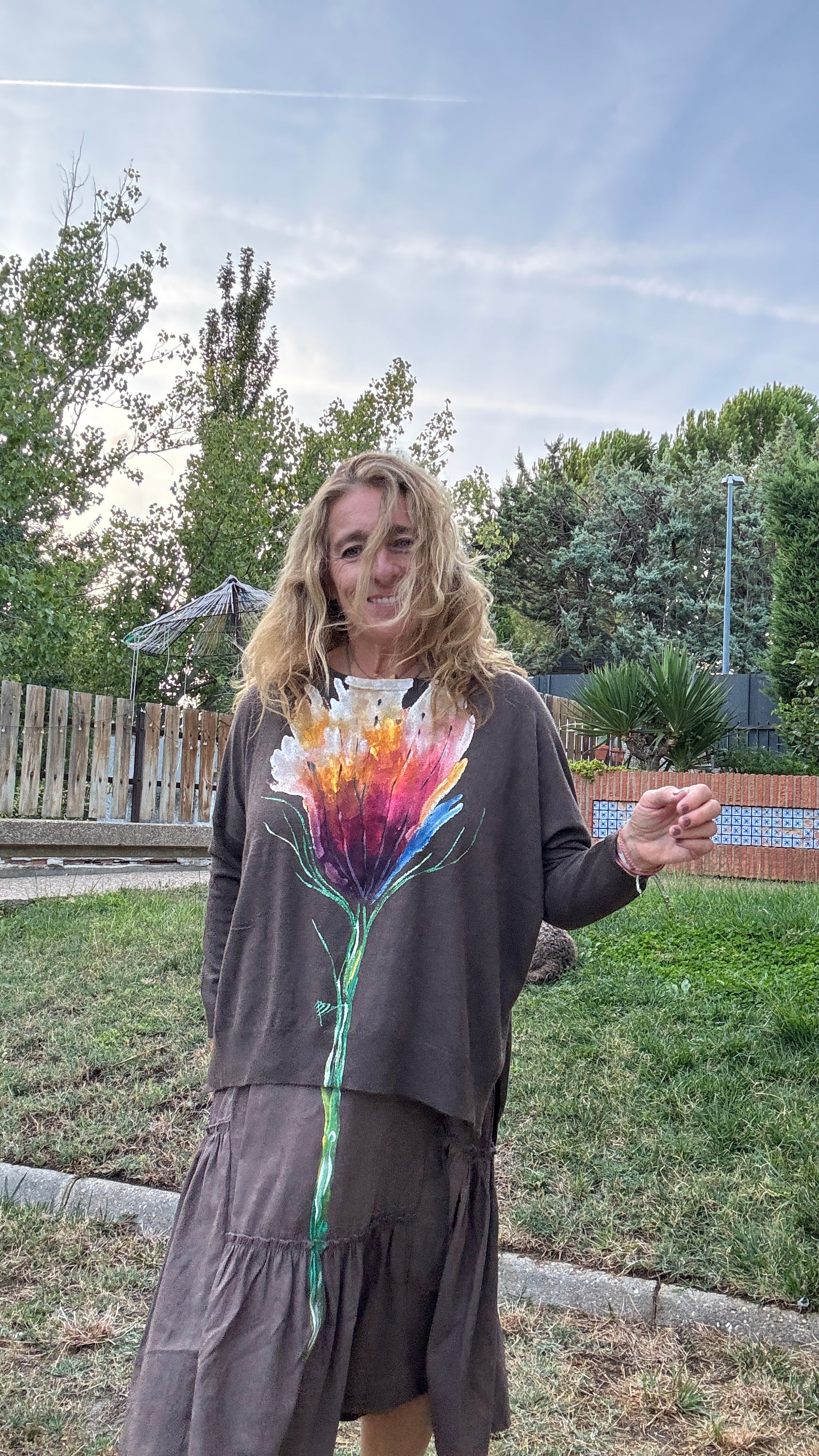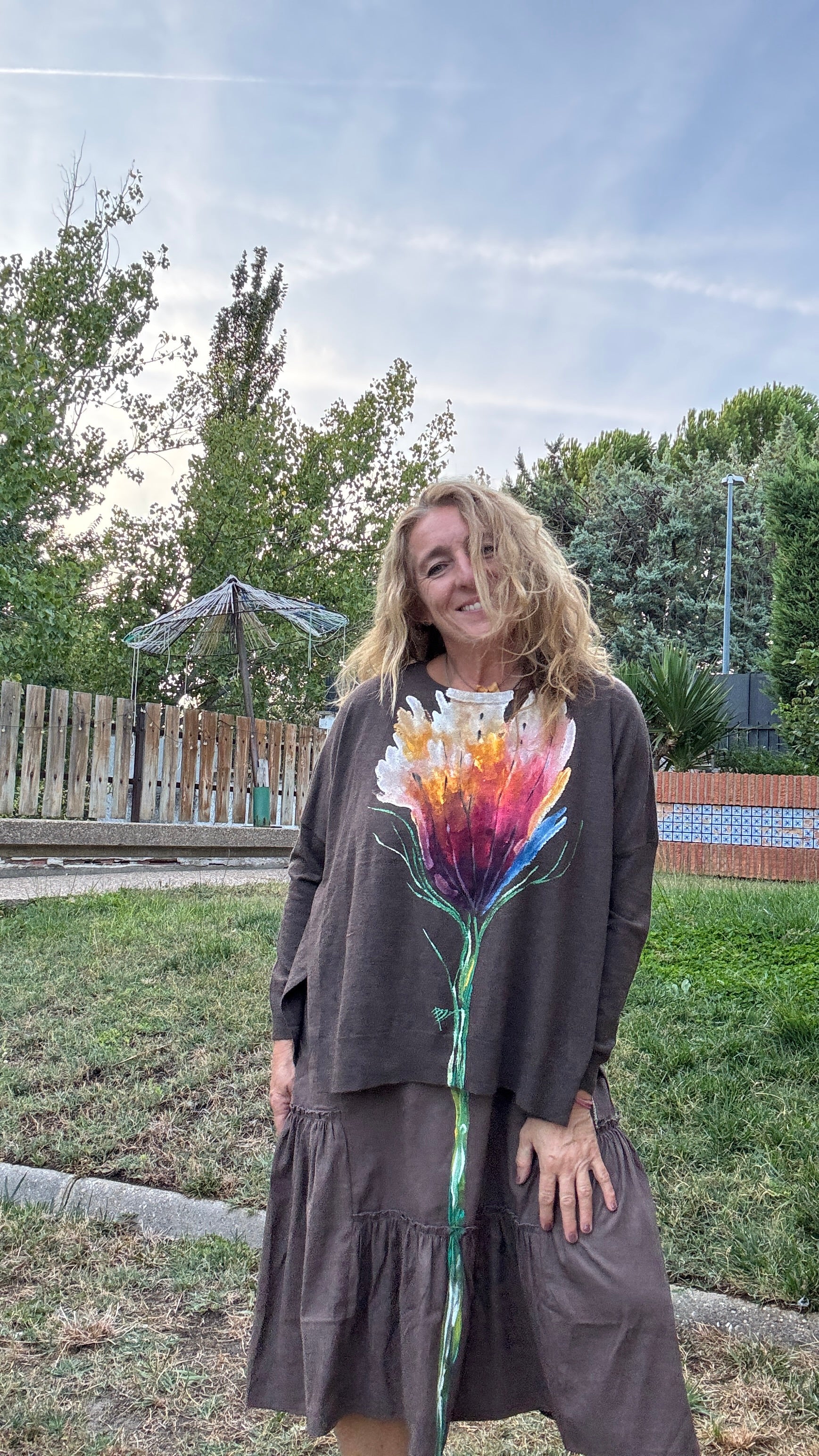 Vestido 2 piezas marrón, jersey oversize, vestido tirantes da talla