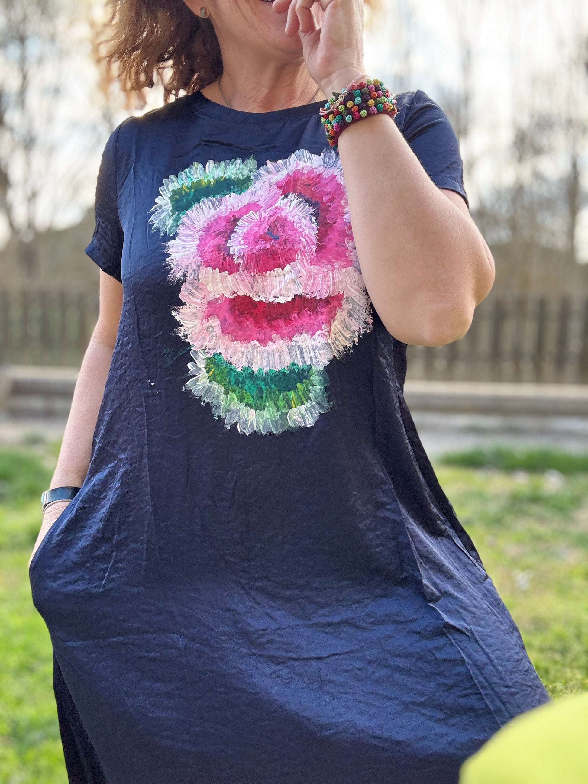 Vestido básico marino, talla única, bolsillos